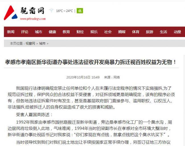 孝感市孝南区新华街道办事处违法征收开发商暴力拆迁视百姓权益为无物!